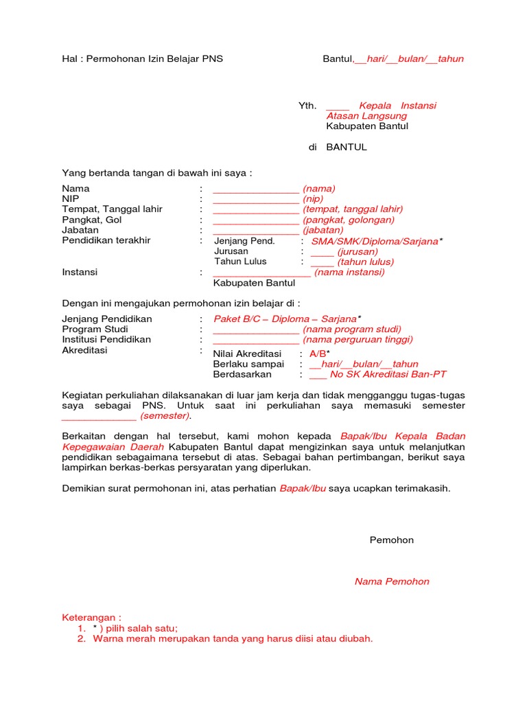 Surat Permohonan Kepada Atasan Langsung Pdf