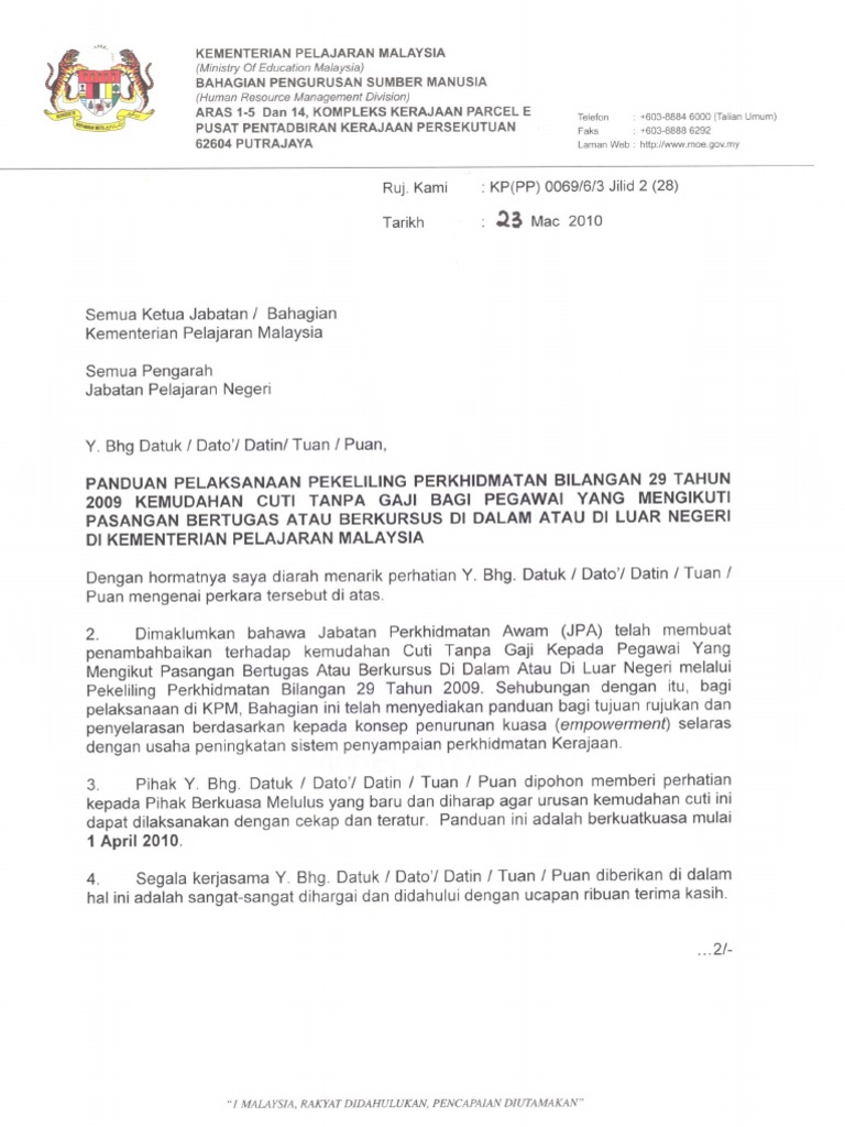 Panduan Cuti Tanpa Gaji Pasangan Pdf Pdf